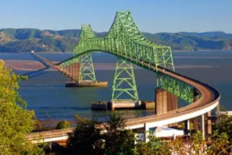 Astoria, Oregon Next up you’ll be driving over the longest bridge in the U.S. as you leave the state of Washington and enter Oregon. The Astoria-Megler Bridge is just over four miles and crosses the mouth of the Columbia River. It’s an impressive site and one you’re bound to remember.