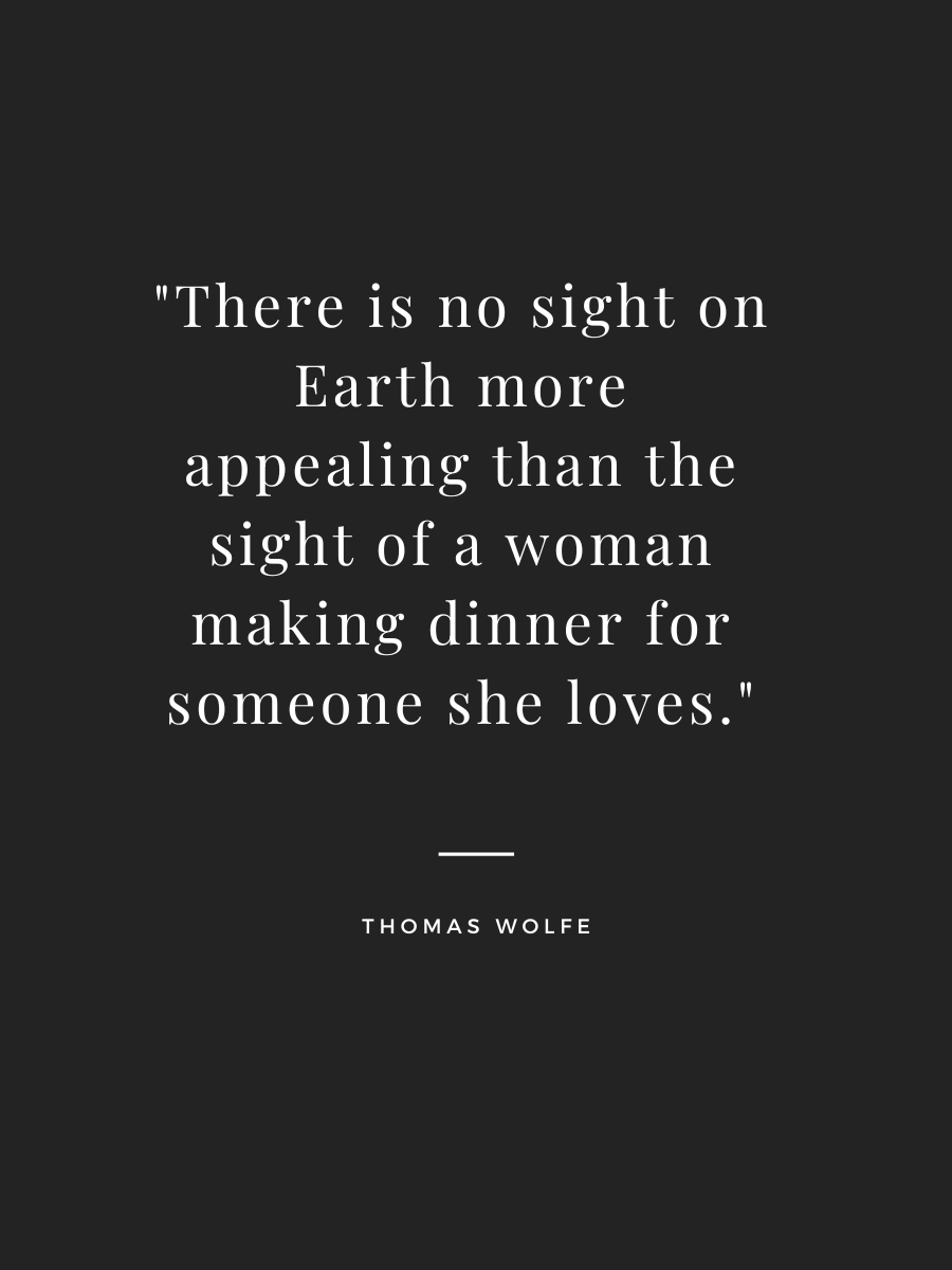 “There is no sight on earth more appealing than the sight of a woman making dinner for someone she loves.” — Thomas Wolfe
