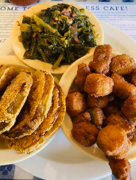 But, what’s a girl like me to do when presented with a menu loaded with Southern staples like country-fried steak, meatloaf, country ham, creamed corn, dumplings, ribs and yea, fried chicken—among a gazillion other things. I have to admit, I was a little nervous … I mean what was I going to eat? Most of the plates I saw being cradled by the insanely happy waitresses didn’t look like anything I ate. But, wouldn’t you know it, they have slow-cooked green beans, turnip greens with pot liquor, fried okra and of course, fried green tomatoes and I was in HEAVEN. Literally. The food really is THAT good.