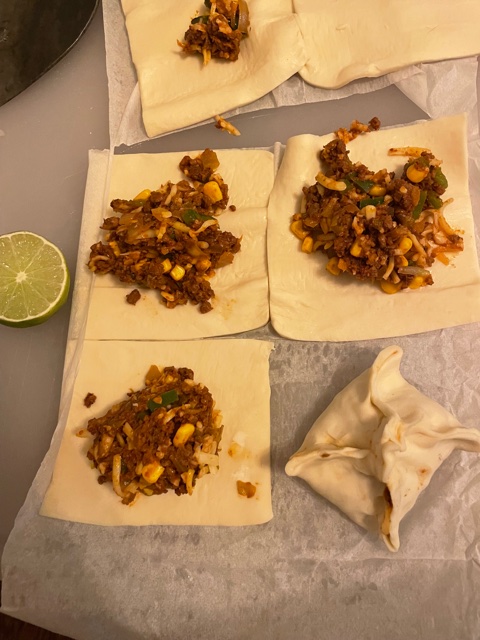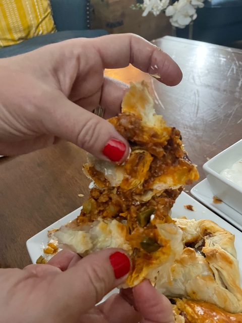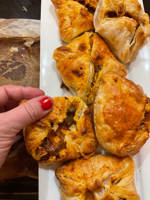 Back to the empanadas and how we made them … a few notes, one, I highly recommend using Lightlife’s Smart Ground. The flavor and texture is outstanding, and it smells divine. It comes precooked so you don’t have to brown it, but I do. And two, I prefer using Wealka’s puff pastry over any other brand because one, it’s vegan, and two it has never let me down. Also, I highly suggest making different kinds of empanadas: try an all veggie one with Chinese spice. An Italian version with a little vegan parmesan and sundried tomatoes. And yes, you can make the dough/crust yourself, I just like them better with the pastry sheets. Honestly, the options are endless so you do you and enjoy!