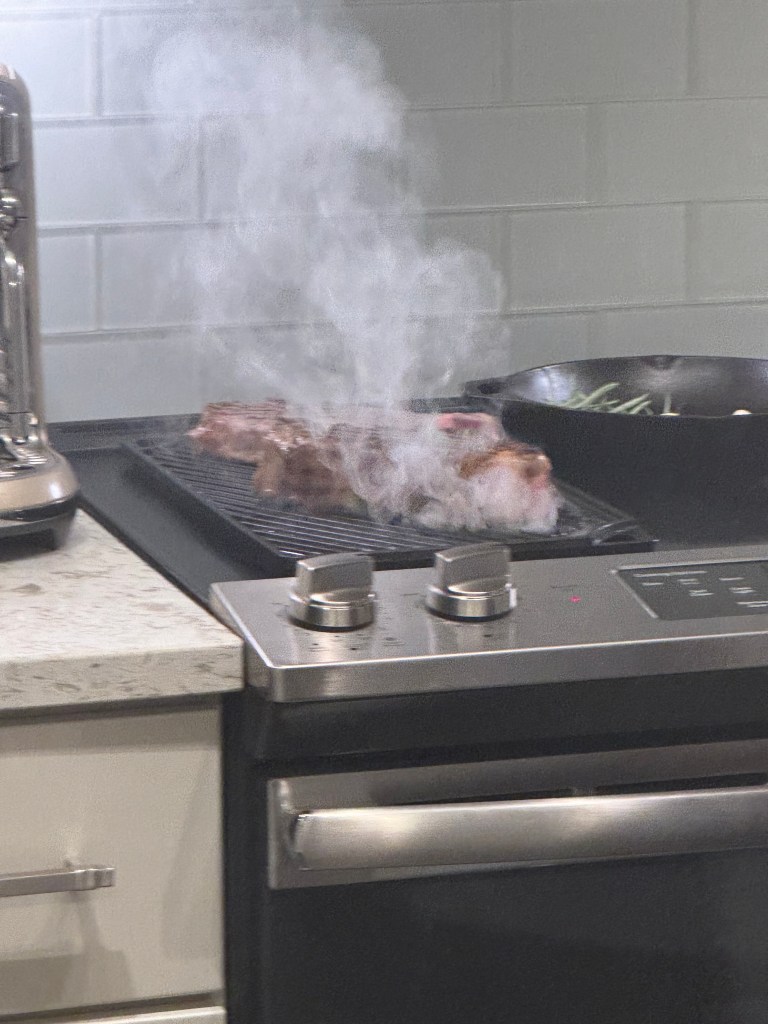 It’s National Steak Day so I thought it fitting to post this AMAZING method for cooking steak at home. Inside. Yes, inside, sans a grill … this is for everyone who lives in a city and doesn’t have access to a grill or does, but it’s just too damn far away to get to (meaning it’s 25 floors down and around the other side of the building). Not going to lie, the searing caused a minor issue with the vent in our kitchen but was it worth it? Yes! 100 percent.