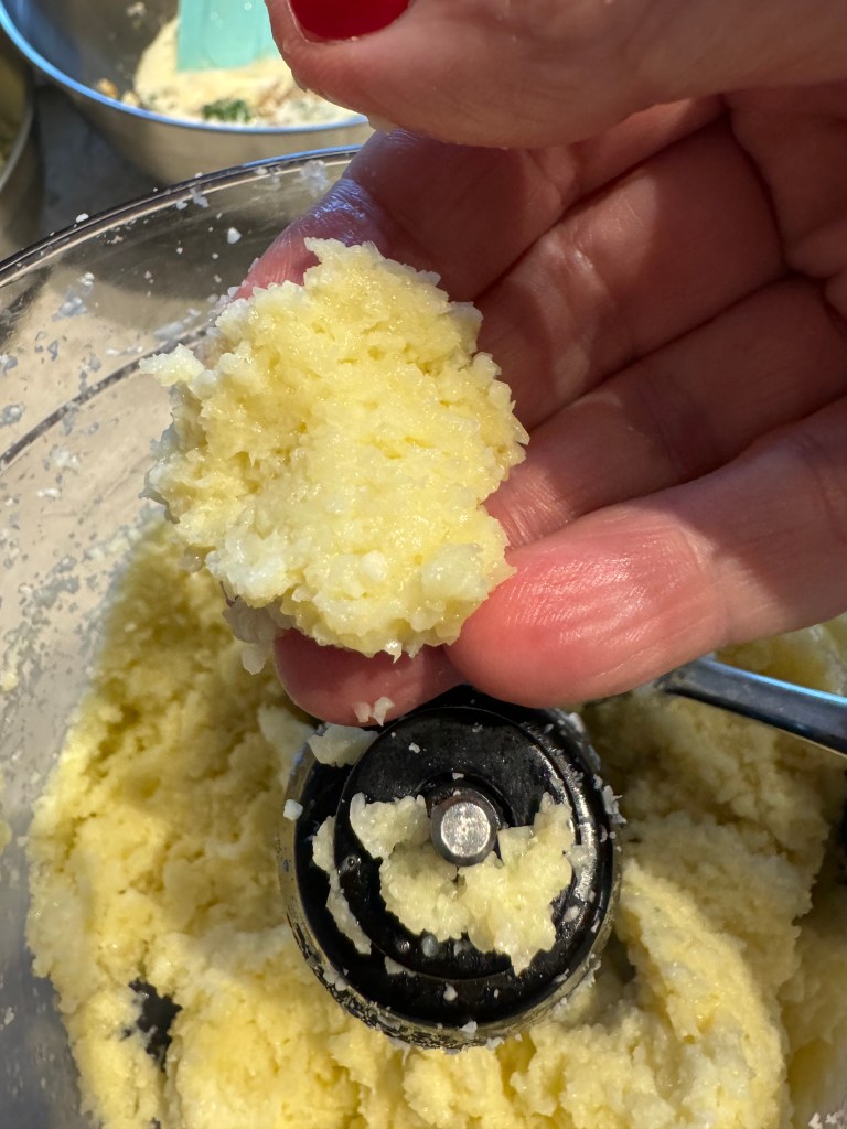 Separate the cauliflower “flowers” from the stems and cook in the microwave with a touch of water for 5 minutes. Remove from microwave, let cool, then press out ALL the excess water. Next, place in a food processor; pulse until finely crumbled. Add parmesan and egg; pulse for about 30 seconds until well combined. Press the mixture into a pie dish making sure to coat the sides as best as possible. Bake at 425 degrees for 10-12 minutes. Remove from oven and let cool.